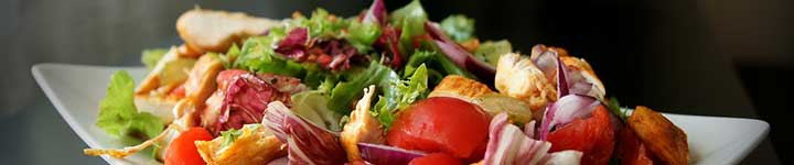 Wildkräutersalat. Eisberg, Rucola mit Tomaten, Gurken, Möhren & Mais Insalata Mista mit Paprika, Schafskäse, Oliven & Peperoni Insalata Mista mit Thunfisch, Ei, Gouda & Ital. Hinterschinken Insalata Mista mit gegrillten Hähnchenstreifen Insalata Mista mit gegrillten Black Tiger & Lachs Salate
